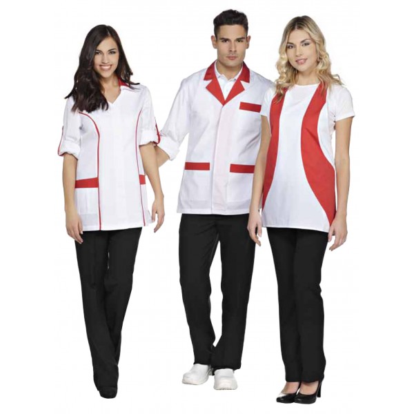 SCAMICIATO STEFYArt. 11P07H43Poliestere 65%Cotone 35%TAGLIA UNICA BIANCO/ROSSO 2 Tasche Coperto dietro